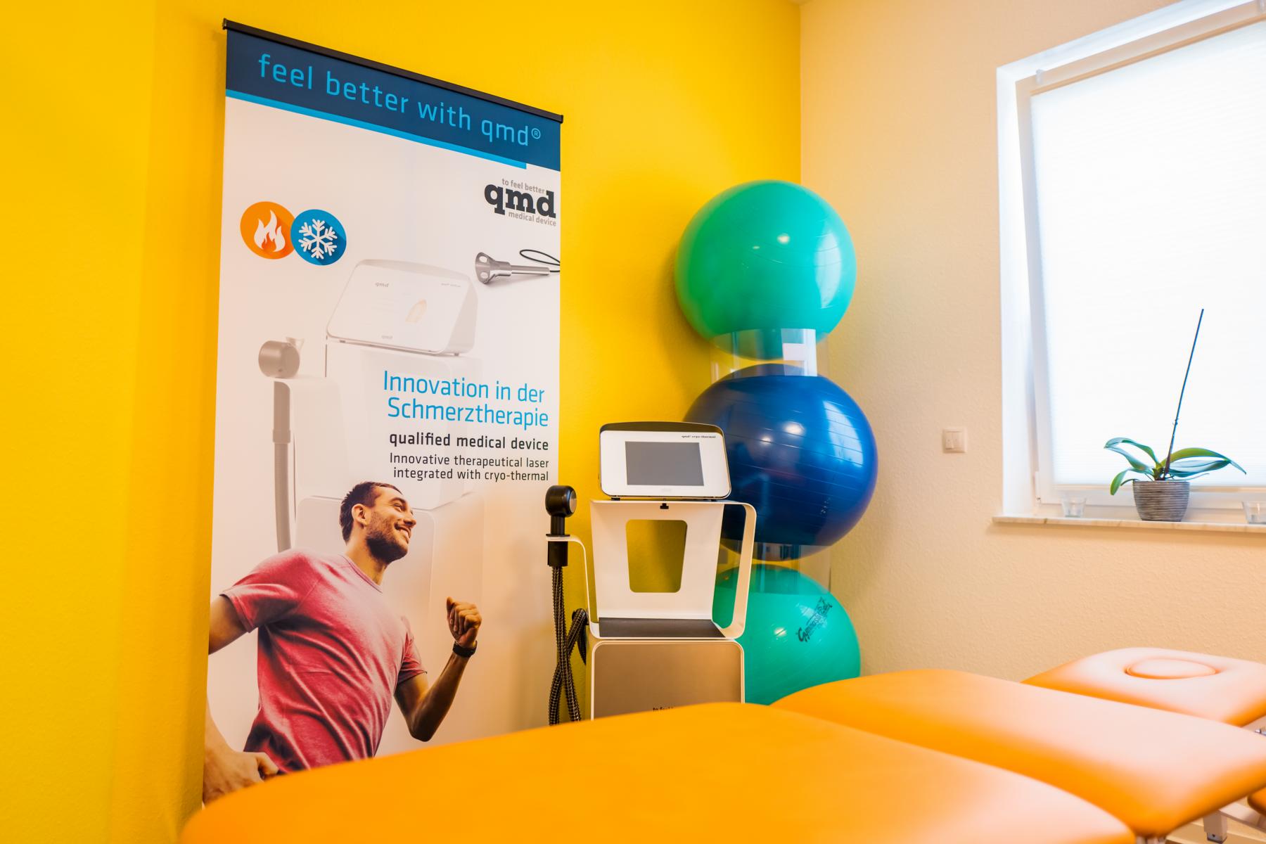 Unsere Behandlugnsräume verfügen neben den klassischen Physiotherapie Geräten auch neueste Medizintechnik wie bspw. das QMD zur Behandlung diverser Beschwerden.